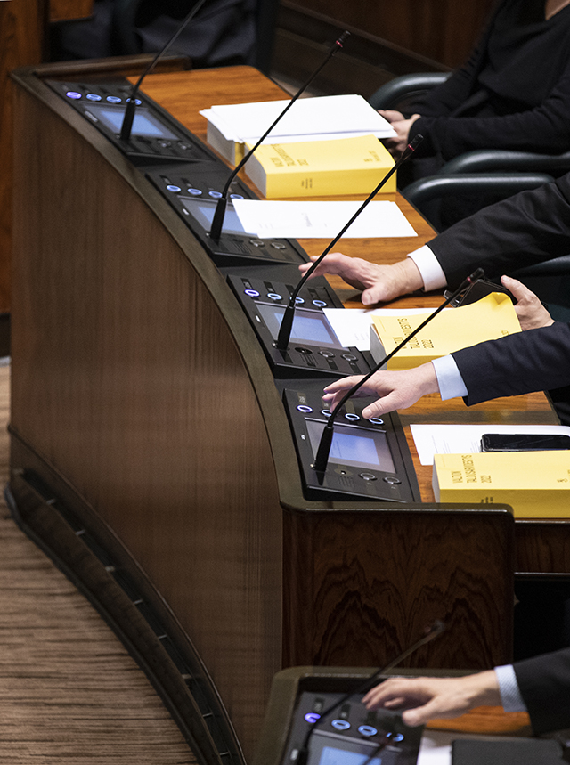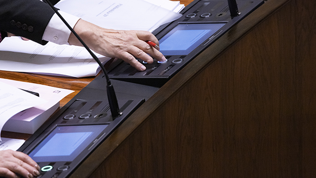 Jokaisen kansanedustajan paikalla täysistuntosalissa on paneeli, josta löytyvät läsnäolo- ja puheenvuoropainikkeet, äänestyspainikkeet sekä mikrofoni. Näyttöruutu mahdollistaa täysistunnon kulun seuraamisen.