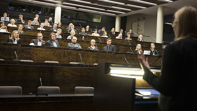 Kurssilla kuullaan myös eduskunnan hallintoon ja talouteen sekä eduskuntatoimittajien työhon liittyviä puheenvuoroja.