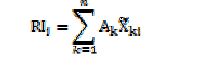 Kunkin talletuspankin i kokonaisriskiä kuvaava mittari RIi saadaan, kun lasketaan yhteen kunkin talletuspankin yksittäisten riskejä kuvaavien mittareiden lopulliset arvot, jotka on kerrottu kunkin yksittäisen riskejä kuvaavan mittarin painoarvolla Ak
