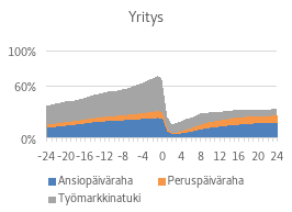 Ansiopäivärahalla korvataan työttömyyden aikaista ansiomenetystä. Edellä nykytilan kuvauksessa kerrottu ansiopäivärahan laskukaava leikkaa korvausastetta palkan noustessa. Keskimääräisen täyden ansiopäivärahan korvausaste on noin 60 prosenttia etuuden perusteena olevasta palkasta. Laskukaavan vuoksi sen korvausaste on keskimääräistä suurempi, jos ansiopäivärahan perustepalkka on keskimääräistä matalampi, ja keskimääräistä korkeammista palkoista määräytyvän ansiopäivärahan korvausaste puolestaan on keskimääräistä korvausastetta matalampi. Työllistymistä edistävään palveluun osallistumisesta maksettava korotettu ansio-osa nostaa korvausastetta. Työttömyysetuuksiin maksetaan maaliskuun 2024 loppuun saakka lapsikorotusta, mikä myös korottaa etuuden määrää. Lapsikorotuksesta luovutaan 1.4.2024 alkaen (L1300/2023).