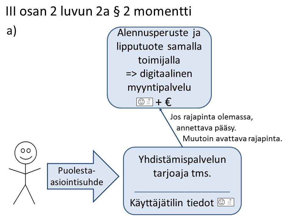 Saman luvun 2 §:n avulla pyritään mahdollistamaan yksittäisten ovelta ovelle tarjottavien matkaketjujen tarjoaminen. Pykälässä velvoitetaan tie- ja raideliikenteen palveluntarjoajat avaamaan liikkumispalvelun tarjoajille ja yhdistämispalvelun tarjoajille pääsy lippu- ja maksujärjestelmänsä myyntirajapintaan. Lisäksi osapuolille on asetettu yhteistyövelvoite tarvittavien käytännön järjestelyjen mahdollistamiseksi.