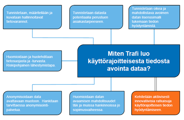 Liikenteen turvallisuusvirasto on toteuttanut tietojen hyödyntämisen mahdollistavat tekniset ratkaisut. Teknisinä tiedonluovutusmenetelminä on ollut viraston tietojärjestelmien suorakäyttö sekä erilaiset sovellus–sovellus-rajapintatoteutukset. Lisäksi liikenteen turvallisuusvirasto on luovuttanut tietoja erilaisina tiedostoina eräajopalveluna. Edelleen virasto tuottaa erilaisia räätälöityjä tietopalveluja, kuten erillispoimintoja.