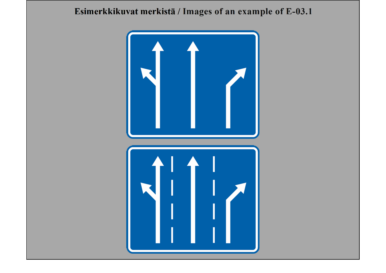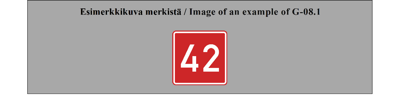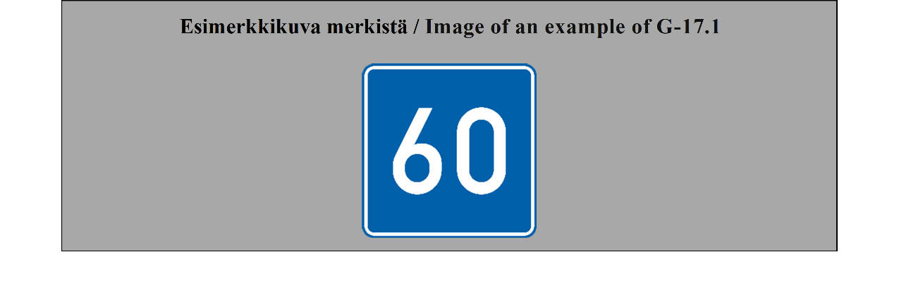 17 ARTIKLA Tien tunnistusmerkit Tien tunnistusmerkit on sijoitettava tielle, joiden tunnuksen ne ilmoittavat. Ne voidaan sijoittaa myös ennakkotiedotusmerkkeihin, tienviittoihin tai varmennusmerkkeihin. | ARTICLE 17 Road identification signs Road identification signs shall be placed along roads which they identify. They may be also placed on advance direction signs, direction signs or confirmatory signs. |