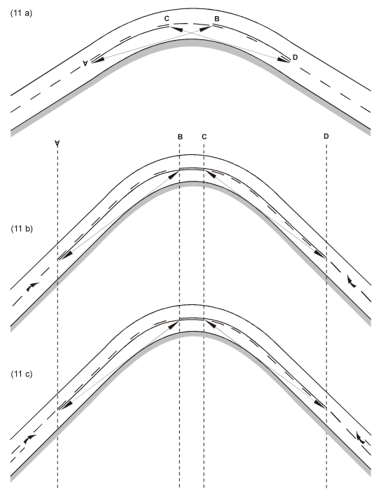2. (a) Pitkittäisellä katkonaisen viivan muodostamalla merkinnällä ajoradalla ei ole kieltävää merkitystä, mutta sitä käytetään (i) joko rajaamaan ajokaista liikenteen ohjaamiseksi (ii) tai varoittamaan ennalta jatkuvan viivan ja sen ilmaiseman kiellon alkamisesta tai muusta erityisen vaarallisesta tieosuudesta. (b) Kun katkoviivoja käytetään tämän kohdan a alakohdan ii alakohdassa mainittuun tarkoitukseen, katkoviivan osien välisten etäisyyksien ja näiden osien pituuksien keskinäisen suhteen on oltava selvästi pienempi kuin silloin, kun niitä käytetään tämän kohdan a alakohdan i alakohdassa mainittuun tarkoitukseen. (c) Kaksoiskatkoviivaa voidaan käyttää erottamaan kaista tai kaistat, joiden liikenteen suunta voi vaihtua tämän yleissopimuksen 23 artiklan 11 kohdan mukaisesti. 3. Jos pitkittäisen merkinnän muodostaa katkoviivan viereen ajorataan sijoitettu yhtenäinen viiva, kuljettajien on huomioitava ainoastaan se viiva, joka on heidän puolellaan. Tämä määräys ei estä kuljettajia, jotka ovat suorittaneet sallitun ohituksen, palaamasta tavanomaiseen asemaansa ajoradalla. 4. Tätä artiklaa sovellettaessa pitkittäisiksi merkinnöiksi ei katsota ajoradan reunaa osoittavia pitkittäisiä merkintöjä, joiden tarkoituksena on tehdä reunat paremmin havaittaviksi, pitkittäisiä viivoja, joita käytetään yhdessä poikittaisten viivojen kanssa ajoradalla olevien pysäköintipaikkojen rajaamiseen, eikä pitkittäisiä viivoja, joilla osoitetaan pysähtymis- tai pysäköintikielto tai -rajoitus. | 2. (a) A longitudinal marking consisting of a broken line on the carriageway shall not have a prohibitory meaning, but shall be used either: (i) To demarcate lanes for the purpose of guiding traffic; or (ii) To give warning of the approach to a continuous line and the prohibition that line conveys, or of the approach to another section of road presenting a particular danger. (b) The ratio between the length of the gaps between the strokes and the length of the strokes shall be substantially smaller where broken lines are used for the purposes referred to in subparagraph (a) (ii) of this paragraph than where they are used for the purpose referred to in subparagraph (a) (i) thereto. (c) Double broken lines may be used to delineate a lane or lanes in which the direction of the traffic flow may be reversed in conformity with Article 23, paragraph 11, of this Convention. 3. Where a longitudinal marking consists of a continuous line adjacent to a broken line on the carriageway, drivers shall take account only of the line that appears on their side. This provision shall not prevent drivers who have overtaken in the manner permitted from resuming their normal position on the carriageway. 4. For the purposes of this Article, longitudinal lines used to mark the edges of the carriageway in order to make them more visible, longitudinal lines connected to transverse lines used to demarcate parking spaces on the carriageway, and longitudinal lines showing a prohibition or restrictions on standing or parking shall not be regarded as longitudinal markings. |