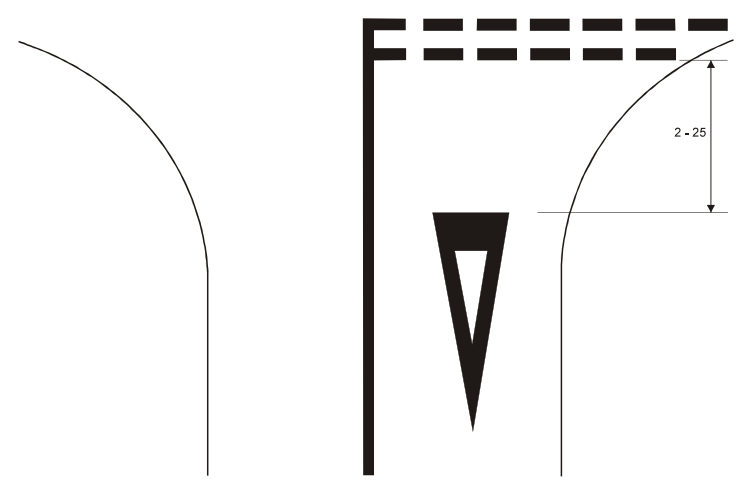 27 ARTIKLA 1. Yhtenäisen viivan muodostama poikittainen merkintä, joka kulkee yhden tai useamman ajokaistan yli, osoittaa linjaa, jonka taakse tämän yleissopimuksen liitteessä 1 olevan B osan 2 kohdassa kuvattu merkki (STOP) velvoittaa kuljettajat pysähtymään. Tällaista merkintää voidaan myös käyttää osoittamaan linjaa, jonka taakse kuljettajien on pysähdyttävä liikennevalon johdosta tai liikennettä ohjaavan viranomaisen antaman merkin vuoksi tai ennen tasoristeystä. Teksti STOP voidaan merkitä ajorataan ennen liitteessä 1 olevan B osan 2 kohdassa kuvatun merkin (STOP) yhteydessä käytettäviä merkintöjä. 2. Ellei se ole teknisesti mahdotonta, on tämän artiklan 1 kohdan mukainen poikittainen merkintä sijoitettava kaikkialle, mihin on asetettu liitteessä 1 olevan B osan 2 kohdassa kuvattu merkki (STOP). 3. Katkoviivan muodostama poikittainen merkintä, joka kulkee yhden tai useamman ajokaistan yli, osoittaa linjan, jota ajoneuvot eivät saa yleensä ylittää täyttäessään väistämisvelvollisuuttaan liitteessä 1 olevan B osan 1 kohdassa kuvatun merkin (VÄISTÄ) johdosta. Ennen tällaista merkintää voidaan ajorataan merkitä leveäreunainen kolmio, jonka yksi sivu on merkinnän suuntainen ja tämän sivun vastainen kärki lähestyviä ajoneuvoja kohti osoittava. 4. Suojateiden merkintään on käytettävä melko leveitä, ajoradan akselin suuntaisia raitoja. 5.Risteävien pyöräteiden merkitsemiseen on käytettävä joko poikittaisia viivoja tai muita merkkejä, joita ei voida sekoittaa suojateiden merkintöihin. | ARTICLE 27 1. A transverse marking consisting of a continuous line across one or more traffic lanes shall mark the line behind which drivers are required by the sign described in Annex 1, section B, paragraph 2 (STOP) to stop. Such a marking may also be used to show the line behind which drivers may be required to stop by a light signal, or by a signal given by an authorized official directing traffic, or before a level crossing. The "STOP" inscription may be marked on the carriageway in advance of the markings accompanying the sign described in Annex 1, section B, paragraph 2 (STOP). 2. Unless this is technically impossible, the transverse marking described in paragraph l of this Article shall be placed on the carriageway wherever a sign B, 2 described in Annex 1, section B, paragraph 2 (STOP), is set up. 3. A transverse marking consisting of a broken line across one or more traffic lanes shall show the line which vehicles may not normally pass when giving way in compliance with the sign described in Annex 1, section B, paragraph 1 (GIVE WAY). In advance of such a marking, a triangle with broad sides, having one side parallel to the marking and the opposite vertex pointing towards approaching vehicles, may be marked on the carriageway to symbolize this sign. 4. To mark pedestrian crossings, relatively broad stripes, parallel to the axis of the carriageway, shall be used. 5. To mark cyclist crossings, either transverse lines, or other markings which cannot be confused with those of pedestrian crossings, shall be used. |