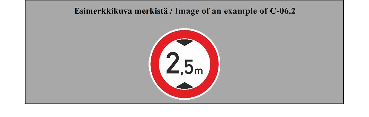 6 ARTIKLA 1. Merkit on sijoitettava niin, että kuljettajat, joita varten ne on tarkoitettu, tunnistavat ne helposti ja ajoissa. Ne on yleensä sijoitettava tien liikennesuunnan mukaiselle puolelle; ne voidaan kuitenkin sijoittaa ajoradan yläpuolelle tai toistaa siellä. Tien liikennesuunnan mukaiselle puolelle sijoitettu merkki on toistettava ajoradan yläpuolella tai sen toisella puolella, jos paikalliset olosuhteet ovat sellaiset, että ne kuljettajat, joita varten se on tarkoitettu, saattaisivat olla havaitsematta sitä ajoissa. 2. Kuljettajille kulloinkin noudatettaviksi tarkoitetut merkit koskevat liikennettä ajoradan koko leveydeltä. Merkit voidaan kuitenkin rajoittaa vain yhtä tai useaa pitkittäisin tiemerkinnöin merkittyä ajoradan ajokaistaa koskeviksi. Tällöin voidaan noudattaa jotakin seuraavista kolmesta vaihtoehdosta: (a) merkki ja tarvittaessa pystysuuntainen nuoli sijoitetaan kyseisen kaistan yläpuolelle; tai (b) merkki sijoitetaan lähelle ajoradan pientareen puoleista reunaa, jos tiemerkinnät osoittavat kiistattomasti, että merkki koskee yksinomaan ajoradan pientareen puoleista kaistaa, ja merkin ainoa tarkoitus on vahvistaa tiemerkintöjen jo ilmaisema paikallinen määräys; tai (c) merkit, jotka kuvataan tämän yleissopimuksen liitteessä 1 olevan E osan II jakson 1 kohdassa (SÄÄNTÖ TAI VAROITUS KOSKEE TIETTYÄ KAISTAA) ja 2 kohdassa (LINJA-AUTOILLE VARATTU KAISTA sekä MUILLE AJONEUVOLUOKILLE VARATTU KAISTA), tai merkit, jotka kuvataan liitteessä 1 olevan G osan II jakson 6 kohdan A alakohdassa (AJOKAISTOJEN SUUNNAT) ja B alakohdassa (AJOKAISTAN PÄÄTTYMINEN), sijoitetaan ajoradan reunaan. 3. Jos toimivaltaiset viranomaiset pitävät erillisiä ajoratoja käsittävän tien reunalle sijoitettua merkkiä tehottomana, se voidaan sijoittaa keskikaistalle eikä sitä siinä tapauksessa tarvitse toistaa pientareella. 4. Kansallisessa lainsäädännössä suositellaan määrättäväksi seuraavaa: (a) Merkit on sijoitettava siten, etteivät ne haittaa ajoneuvoliikennettä ajoradalla ja, jos ne on sijoitettu pientareelle, ne aiheuttavat mahdollisimman vähän haittaa jalankulkijoille. Liikennemerkin sijoituspaikalla olevan ajoradan tason ja merkin alareunan välisen etäisyyden on oltava niin samanlainen kuin mahdollista samalla tiellä olevissa samanlaisissa liikennemerkeissä; (b) Liikennemerkkikilpien on oltava kooltaan sellaisia, että niissä oleva merkki voidaan helposti havaita tarpeeksi kaukaa ja että niitä lähestyvä voi helposti ymmärtää sen; tämän kohdan c alakohdan määräykset huomioon ottaen on liikennemerkkien koko sovitettava ajoneuvojen tavanomaisen nopeuden edellyttämäksi. (c) Varoitusmerkkien ja sääntelymerkkien (sääntömerkkejä lukuun ottamatta) koon on oltava standardisoitu jokaisen sopimuspuolen alueella. Yleensä on jokaista merkkilajia oltava neljää eri kokoa: pieni, normaali, suuri ja erittäin suuri. Pieniä merkkejä on käytettävä, jos olosuhteiden vuoksi ei voida käyttää normaalikokoisia merkkejä tai jos liikenne voi edetä vain hitaasti; niitä voidaan myös käyttää aikaisemman merkin toistamiseksi. Suuria merkkejä on käytettävä erittäin leveillä ja nopealiikenteisillä teillä. Erittäin suuria merkkejä on käytettävä erittäin nopealiikenteisillä teillä, kuten moottoriteillä. | ARTICLE 6 1. Signs shall be so placed that the drivers for whom they are intended can recognize them easily and in time. They shall normally be placed on the side of the road appropriate to the direction of traffic; they may, however, be placed or repeated above the carriageway. Any sign placed on the side of the road appropriate to the direction of traffic shall be repeated above or on the other side of the carriageway if local conditions are such that it might not be seen in time by the drivers for whom it is intended. 2. All signs shall apply to the drivers for whom they are intended over the whole width of the carriageway open to traffic. However, signs may be made to apply to only one or to several lanes of the carriageway when lanes are defined by longitudinal markings. In this case, one of the following three options shall be used: (a) The sign with, if necessary, the addition of a vertical arrow shall be placed above the lane concerned, or (b) The sign will be placed on the nearside edge of the carriageway when the road markings indicate without doubt that the sign applies solely to the traffic lane on the nearside of the carriageway and that the only purpose of this sign is to confirm a local regulation already indicated by means of road markings, or (c) Signs described in Annex 1, section E, subsection II, paragraphs 1 (REGULATION OR DANGER WARNING APPL YING TO A LANE) and 2 (LANE RESERVED FOR BUSES and LANE RESERVED FOR OTHER CATEGORIES OF VEHICLES) to this Convention or signs described in Annex 1, section G, subsection II, paragraph 6 A (DIRECTION OF LANES) and B (END OR CLOSURE OF A LANE) will be placed on the edge of the carriageway. 3. Where in the opinion of competent authorities a sign would be ineffective if placed on the verge of a road with separated carriageways, it may be placed on the dividing strip and in this case need not be repeated on the verge. 4. It is recommended that domestic legislation should provide: (a) That signs shall be so placed that they do not obstruct vehicular traffic on the carriageway, and, if placed on the verges, obstruct pedestrians as little as possible. The difference in level between the carriageway on the side where a sign is placed and the lower edge of the sign shall be as uniform as possible for signs of the same class on the same route; (b) That the dimensions of sign panels shall be such that the sign is easily visible for a distance and can be easily understood by a person approaching it; subject to the provisions of subparagraph (c) of this paragraph, these dimensions shall be adapted to the normal speed of vehicles; (c) That the dimensions of danger warn