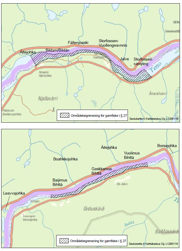 Kalastussäännön 34 ja 35 § sisältää määräykset ennalta sovituista lohikantakohtaisista toimenpiteistä, joiden mukaan kalastusaikoja lyhennetään tiettyjen edellytysten täyttyessä. Kalastussäännön 36 §:ssä rajoitetaan veneen kalastuskäyttöä Tenossa. Määräykset rajoittavat kalastusoikeuden käyttöä ja kuuluvat lainsäädännön alaan.