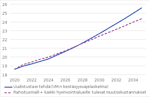Pykälän 1 momentissa säädettäisiin rahoitusperiaatteen toteutumista koskevasta tarkastelusta. Hyvinvointialueille osoitetut tehtävät ja niiden rahoitus tulisi sovittaa yhteen julkisen talouden tilan kanssa ottaen huomioon myös julkisen talouden pidemmän aikavälin kestävyys. Käytännössä tämä yhteensovitus tehtäisiin vaalikauden ensimmäisessä julkisen talouden suunnitelmassa, jossa valtioneuvosto asettaa rahoitusasematavoitteet ja esittää yksilöidyt toimenpiteet rahoitusasematavoitteiden saavuttamiseksi. Julkisen talouden suunnitelma tarkistetaan vuosittain huhtikuun loppuun mennessä, jolloin arvioidaan toimenpiteiden riittävyyttä suhteessa asetettuihin tavoitteisiin ottaen huomioon kokonaistaloudellinen kehitys. Samassa yhteydessä arvioitaisiin rahoitusperiaatteen toteutumista niin koko hyvinvointialuetalouden kuin yksittäisen hyvinvointialueen tasolla. Lisäksi käsiteltäisiin hyvinvointialueiden tehtäviä ja velvoitteita koskeva lainsäädäntöä ja sen muutoksia, hyvinvointialueiden taloutta, kuten kustannuskehitystä ja investointeja, hyvinvointialueiden ohjausta sekä valtion hyvinvointialuetalouteen liittyviä taloudellisia vastuita.