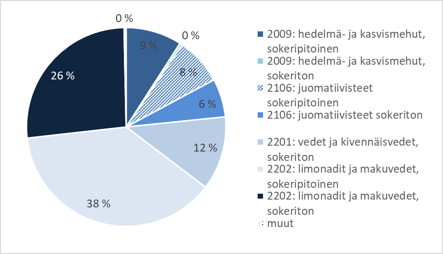 Sokeripitoisten juomien kulutuksen jakautumisesta eri sokeripitoisuuden juomiin ei ole käytettävissä julkisia tietoja. Voidaan arvioida, että tyypillisesti sokeripitoisten juomien sokeripitoisuus on noin 8–10 grammaa sokeria 100 millilitrassa juomaa. Kauppojen valikoimista löytyy juomia, joiden sokeripitoisuus on selvästi tätä korkeampi, mutta toisaalta etenkin nimikkeen 2202 juomavalikoimasta löytyy myös merkittävästi juomia, joiden sokeripitoisuus on matalampi.