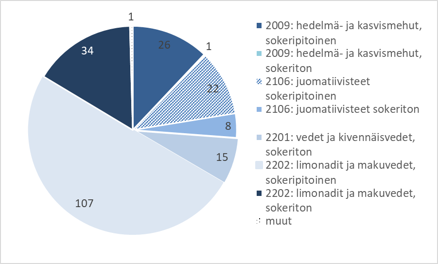 Virvoitusjuomien verollisesta kulutuksesta selvästi suurin ryhmä on nimikkeen 2202 erilaisista limonadeista ja maustetuista vesistä koostuva tuoteryhmä, joka muodosti noin kaksi kolmasosaa veropohjasta vuonna 2021. Nimikkeen 2106 mehutiivisteiden ja kiinteiden juoma-ainesten osuus veropohjasta oli noin 14 prosenttia ja nimikkeen 2201 vesien osuus noin 12 prosenttia. Nimikkeen 2009 hedelmä- ja kasvispohjaisten täysmehujen osuus oli noin 9 prosenttia.