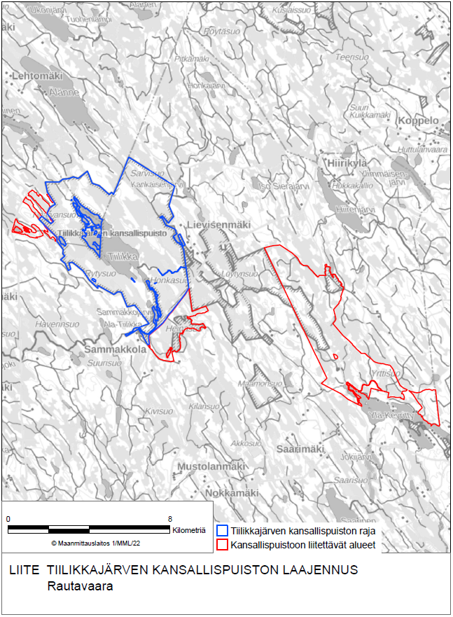 Valtioneuvosto on antanut eduskunnalle hallituksen esityksen uudeksi luonnonsuojelulaiksi ja eräiden siihen liittyvien lakien muuttamisesta (HE 76/2022 vp), jäljempänä uusi luonnonsuojelulaki. Luonnonsuojelulain kokonaisuudistukseen liittyen valtioneuvosto on antanut eduskunnalle myös hallituksen esityksen vuoden 1923 luonnonsuojelulain nojalla perustettuja luonnonpuistoja, kansallispuistoja, ja eräitä luonnonsuojelualueita koskevien lakien muuttamista koskevaksi lainsäädännöksi (HE 270/2022 vp). Kyseisen esityksen tavoitteena on saattaa vuoden 1923 luonnonsuojelulain nojalla perustettujen luonnonsuojelualueiden rauhoitussäännökset yhdenmukaisiksi uuden luonnonsuojelulain kanssa ja saattaa rauhoitussäännökset lain tasolle. Muutosten on tarkoitus tulla voimaan samanaikaisesti uuden luonnonsuojelulain kanssa 1.6.2023. Myös lakia eräiden valtion omistamien alueiden muodostamisesta kansallispuistoiksi ja luonnonpuistoiksi (674/1981) on tarkoitus päivittää esityksessä. Päivityksen myötä vuoden 1981 asetuksessa (932/1981) säädetyt Tiilikkajärven kansallispuiston rauhoitussäännökset korvattaisiin uuden luonnonsuojelulain mukaisilla rauhoitussäännöksillä, jotka sisällöllisesti vastaavat lähes täysin voimassaolevia.