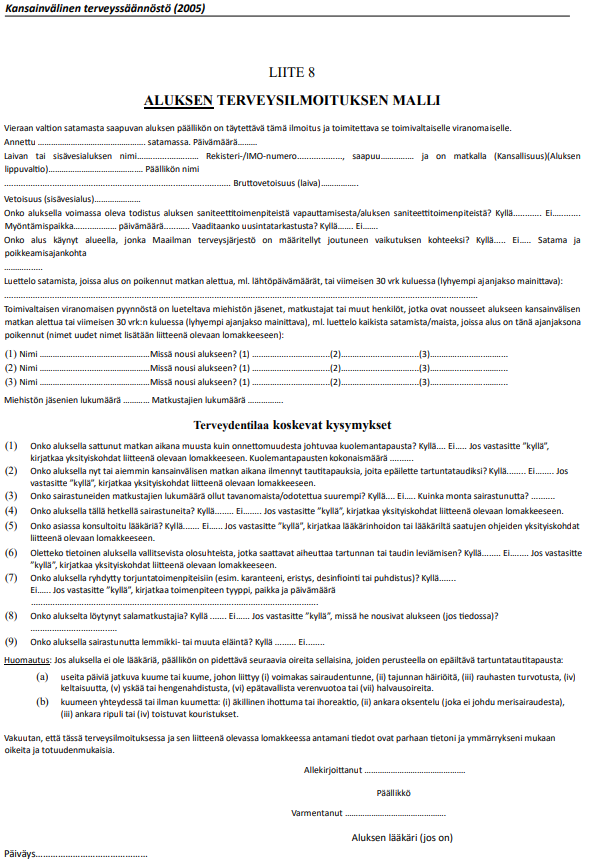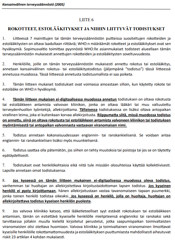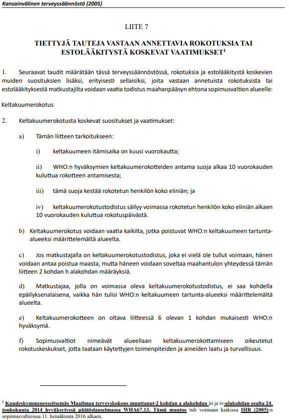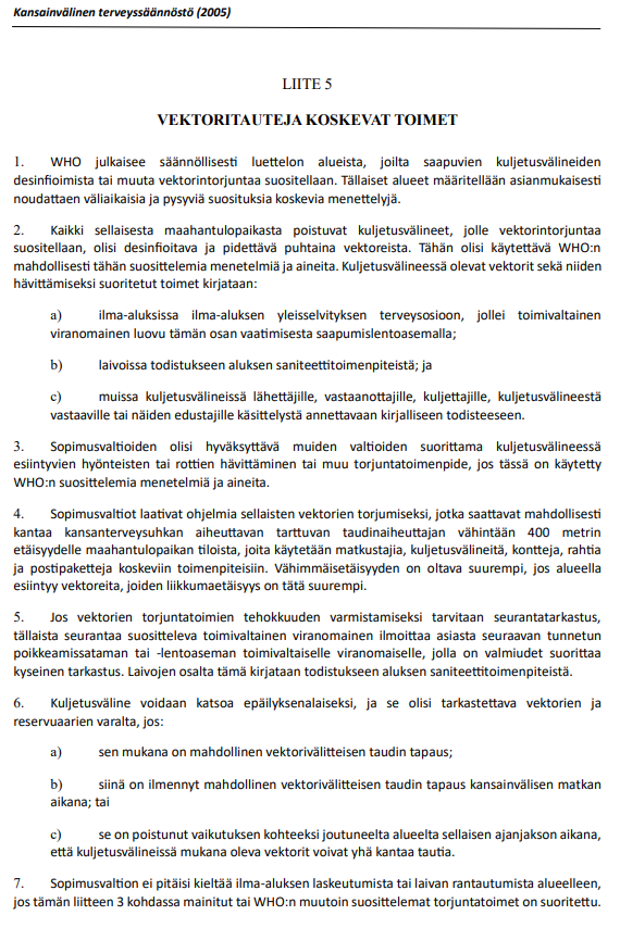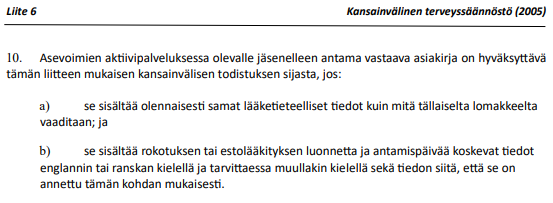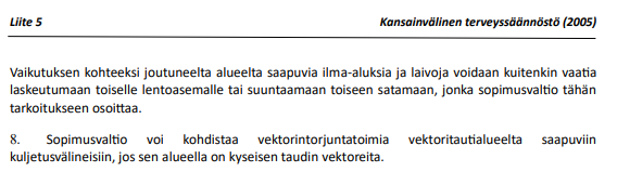 Sopimusmääräys sisältää WHO:a velvoittavan tiedonantovelvollisuuden, joten sen ei katsota kuuluvan kansallisen lainsäädännön alaan.