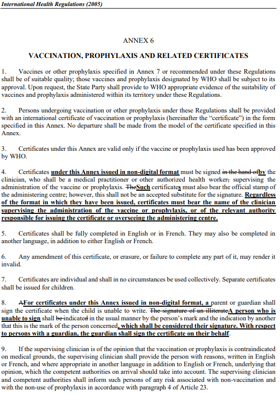 Artiklaa muutettiin siten, että jäsenvaltion tulisi pitää WHO tietoisena ja konsultoida järjestöä ajoissa sellaisista tapahtumista, jotka eivät edellytä 6 artiklan mukaista ilmoitusvelvollisuutta. Aiemman muotoilun mukaan jäsenvaltiolla oli mahdollisuus pitää WHO tietoisena. Nyt tehty muutos on siten aiempaa muotoilua velvoittavampi, mutta jättää sopimusvaltioille kuitenkin edelleen kansallista harkintavaltaa WHO:n tiedottamisen suhteen.