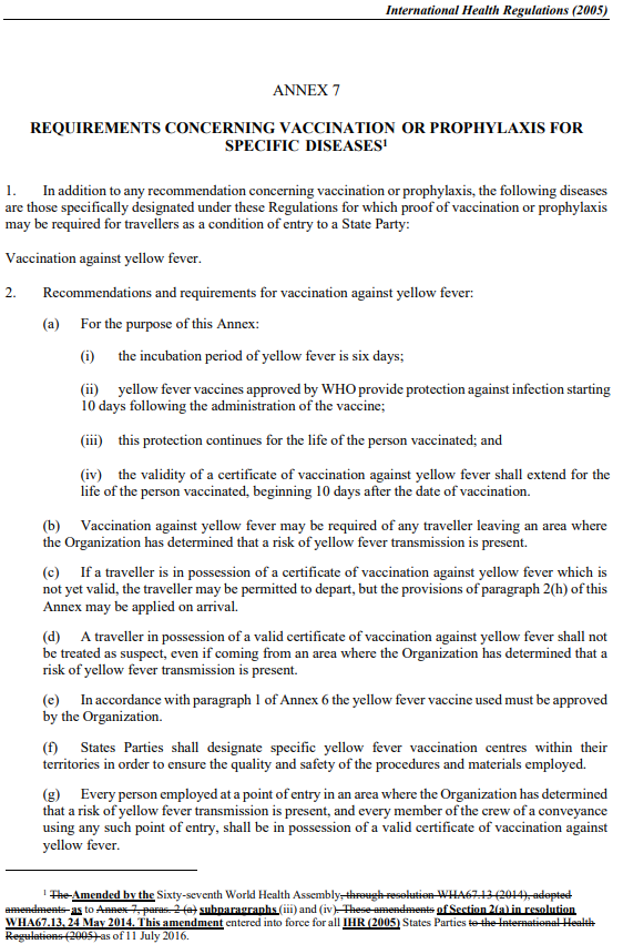 7. The reserving State shall continue to fulfil any obligations corresponding to the subject matter of the reservation, which the State has accepted under any of the international sanitary agreements or regulations listed in Article 58.