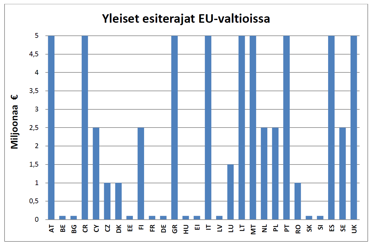 ESMA:n ja komission toteuttamassa eurooppalaisessa vertailussa on käynyt ilmi, että hajonta EU-valtioiden kesken on suurta. Suomessa avoimuusdirektiivin muutos on saatettu voimaan arvopaperimarkkinalain muutoksella (HE 11/2015 vp), joka tuli voimaan 26 päivänä marraskuuta 2015. Muutoksen seurauksena yleisölle tarjottavista arvopapereista pitää laatia esite vasta, kun tarjouksen yhteisarvo on vähintään 2,5 miljoonaa euroa (aiemmin 1,5 miljoonaa euroa). Myös kyseinen raja-arvo on edelleen keskimääräistä ankarampi, ja tämän takia se ehdotetaan nostettavaksi joukkorahoituksen saajilla viiteen miljoonaan euroon eli samalle tasolle kuin yleinen esiteraja-arvo on esimerkiksi Kroatiassa, Kreikassa, Irlannissa, Italiassa, Liettuassa, Maltalla, Portugalissa, Espanjassa, Iso-Britanniassa ja Itävallassa. Alankomaissa, Ruotsissa, Puolassa ja Kyproksella esiteraja-arvo on tällä hetkellä 2,5 miljoonaa euroa, joten toimenpiteellä voidaan parantaa Suomen joukkorahoitusmarkkinoiden kilpailukykyä suhteessa keskeisiin kilpailijamaihin. Esitettä ei siten tarvitse julkaista, jos arvopapereita tarjotaan Suomessa 12 kuukauden aikana yhteenlasketulta arvoltaan alle viiden miljoonan euron suuruinen määrä laskettuna ensimmäisestä arvopaperitarjouksesta. Muutoksella pyritään helpottamaan erityisesti kasvu- ja pk-yritysten rahoituksen saantia ja vähentämään euromäärältään pieniin arvopaperitarjouksiin liittyviä hallinnollisia kustannuksia, jotka johtuvat muun muassa asiantuntijoiden palkkaamisesta esitteen laatimisprosessin läpiviemisen yhteydessä. Joukkorahoitusta koskevalla esitepoikkeuksella pyritään tukemaan toimialan kasvua Suomessa ja saamaan rahoitusta hakevia pk-yrityksiä joukkorahoituksen piiriin. Vastaavia nimenomaan joukkorahoitusta ja sen kasvua tukevia esiteraja-arvoa koskevia ratkaisuja on tehty myös Ranskassa, Saksassa, Belgiassa ja Itävallassa toimialan tukemiseksi. Joukkorahoituksen hyödyntämiseen kannustavien laintasoisten pelisääntöjen avulla, kuten asettamalla joukkorahoitukselle korkeampi viiden miljoonan euron esiteraja-arvo, voidaan tukea yrityksien kasvupolkua ja mahdollisuuksia saada vaihtoehtoista rahoitusta myös laajemmalta sijoittajajoukolta. Ratkaisulla poiketaan normaalisti rahoitusmarkkinoilla käytetystä tasapuolisuuden vaatimuksesta, jota voidaan toimialan pieni koko ja kehittymättömyys huomioon ottaen pitää kuitenkin perusteltuna. Arvopaperimarkkinalain mukaisten arvopaperien tarjoamisessa, jossa esitettä ei ole laadittava, on kuitenkin noudatettava arvopaperimarkkinalain 1 luvun 2—4 §:n säännöksiä hyvän arvopaperimarkkinatavan noudattamisesta, totuudenvastaisten ja harhaanjohtavien tietojen antamisen kiellosta sekä riittävien tietojen pitämisestä sijoittajien saatavilla, jotka takaavat riittävän tasoisen sijoittajansuojan toteutumisen pienimuotoisissa arvopaperitarjouksissa. Tiedonantovelvollisuutta täsmennetään 21 §:n nojalla annettavalla valtiovarainministeriön asetuksella, joka sisältäisi säännökset muun muassa riskivaroituksesta ja muista sijoittajien näkökulmasta keskeisiksi arvioiduista seikoista.