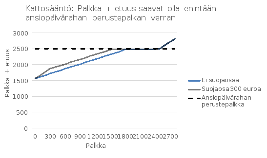 Ehdotettu työssäoloehtoa kerryttävä kuukausiansio on se palkkasumma, joka vastaa pienintä ansiopäivärahan ansio-osaa kerryttävää palkkaa vuonna 2023. Tulorajaa tulisi tarkistaa vuosittain, jotta tuloraja ei laskisi ajan myötä suhteessa peruspäivärahaan ja sitä kautta ansio-osaa kerryttävään palkkaan.