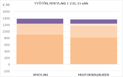 Kuvio 2: Työmarkkinatuella oleva työtön (tulot eivät muutu)