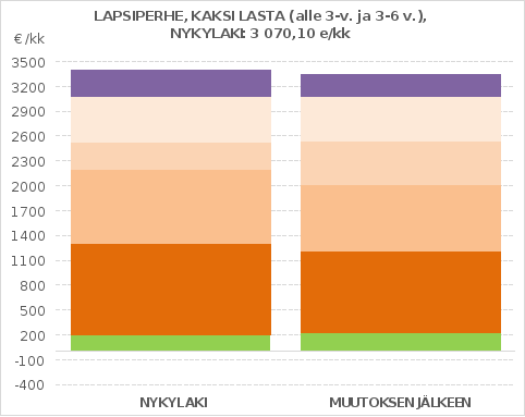 Kuvio 5: Lapsiperhe sekä alle 3-vuotias ja 3–6-vuotias lapsi (tulot eivät muutu)