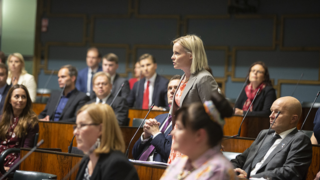 I den första behandlingen beslutar riksdagen om innehållet i lagförslagen. Först för riksdagen en allmän debatt och därefter följer en detaljerad behandling. Under den detaljerade behandlingen kan ledamöterna komma med förslag som avviker från betänkandet. Vid behov röstar riksdagen om innehållet i de enskilda bestämmelserna.