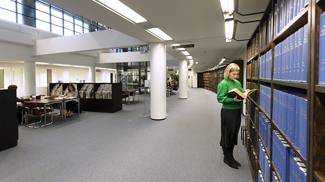 Självbetjäningsvåningen finns i bottenplanet och nås via trappan eller hissen. Man ska själv hämta publikationer i hyllorna och låna dem i kundtjänsten. Signum finns i databasen Selma.