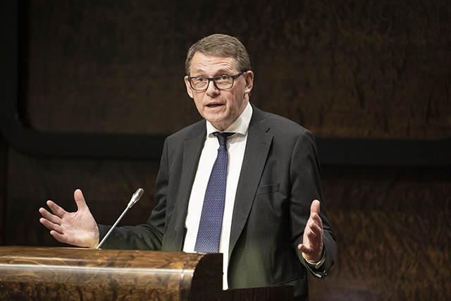 Talman Matti Vanhanen vid presskonferensen