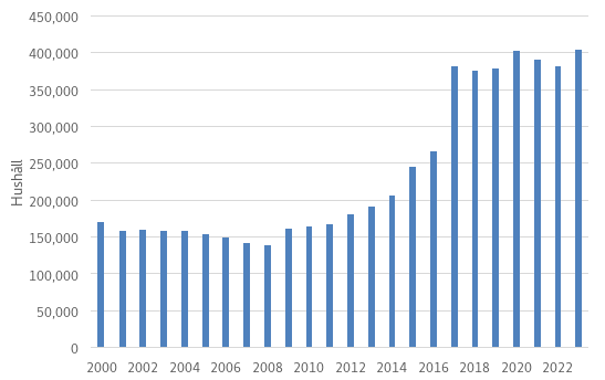| Hushåll | Andel % | Hushåll | Andel % |