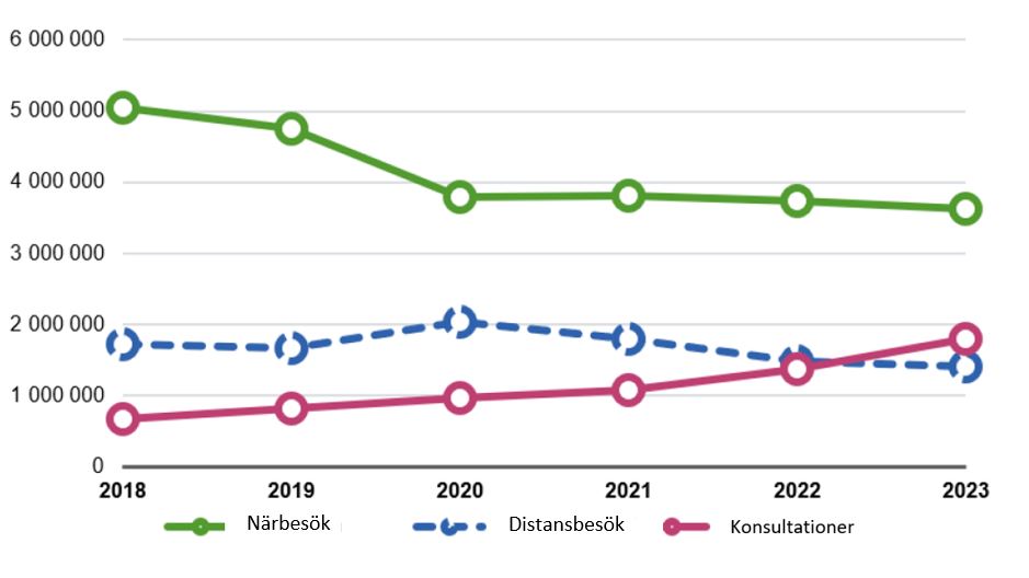 SHVS:s personalinsats uppgick år 2023 till sammanlagt 820 årsverken, varav 317 hänförde sig till allmänmedicin, 191 till psykiatri, 272 till mun- och tandhälsa samt 40 till förvaltning. SHVS har satsat kraftigt på reformer som förbättrar servicens produktivitet och effektivitet. SHVS har förberett sig på en skärpning av vårdgarantin bland annat genom att systematiskt förnya och effektivisera sin servicemodell och genom att genomföra en omfattande digital övergång. För att förbättra tillgången till tjänster har SHVS överfört tjänster till digitala kanaler, så att upp till ca 62 procent av besöken inom allmänmedicin och mentalvård sköttes via digitala kanaler år 2023. Under våren och början av sommaren 2023 förnyade, förtydligade och förenklade SHVS sin riksomfattande servicemodell så att studeranden genast i samband med bedömningen av vårdbehovet får en mottagningstid i form av distans- eller närservice. För att förbättra tillgången till tjänster har SHVS:s mun- och tandhälsa kontinuerligt och aktivt utvecklat sin verksamhet. Målet är att uppnå en så god balans som möjligt mellan efterfrågan och de tillgängliga resurserna, så att tjänsterna kan tillhandahållas vid rätt tid och så att vårdperioderna som helhet kan slutföras på så kort tid som möjligt. För att optimera processeffektiviteten och resurserna är avsikten att tjänsteproduktionen i fortsättningen ska hållas i egna händer i så stor utsträckning som möjligt och därför har anskaffningar från underleverantörer konkurrensutsatts och granskats kritiskt. Efterfrågetopparna infaller alltid i början av terminen, i början av hösten och i början av året, vilket medför utmaningar. Den ökade efterfrågan på tjänster utgör också en utmaning. När det gäller mun- och tandhälsan har man berett sig och förberett sig på den skärpta vårdgarantiregleringen.