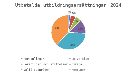 År 2024 betalade Sysselsättningsfonden ut cirka 11,5 miljoner euro i utbildningsersättning till 602 arbetsgivare för utbildningsdagarna under 2023. De arbetsgivare som var berättigade till ersättning ansökte om ersättning för sammanlagt 512 268 utbildningsdagar. Av de arbetsgivare som fick utbildningsersättning var 264 kommuner och städer, 21 välfärdsområden, 177 föreningar och stiftelser, 94 församlingar, 10 universitet och 36 andra arbetsgivare.