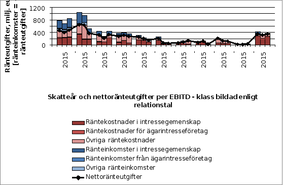 Ränteutgifter är enligt 18 a § i näringsskattelagen avdragsgilla till fullt belopp till den del de motsvarar beloppet av ränteinkomsterna. Ränteutgifterna är också avdragsgilla till fullt belopp om nettoränteutgifterna under skatteåret uppgår till högst 500 000 euro. Nettoränteutgifternas belopp innehåller då nettoränteutgifter som betalats både till parter i intressegemenskap och till parter som inte är i intressegemenskap. Begränsningen bygger på resultatet av räntebetalarens näringsverksamhet, som ökats med ränteutgifter, avskrivningar som dras av i beskattningen samt erhållna nettokoncernbidrag enligt lagen om koncernbidrag vid beskattningen (825/1986, koncernbidragslagen). Med resultatet av näringsverksamhet avses den beskattningsbara inkomsten före inkomstskatter och andra icke avdragsgilla skatter.