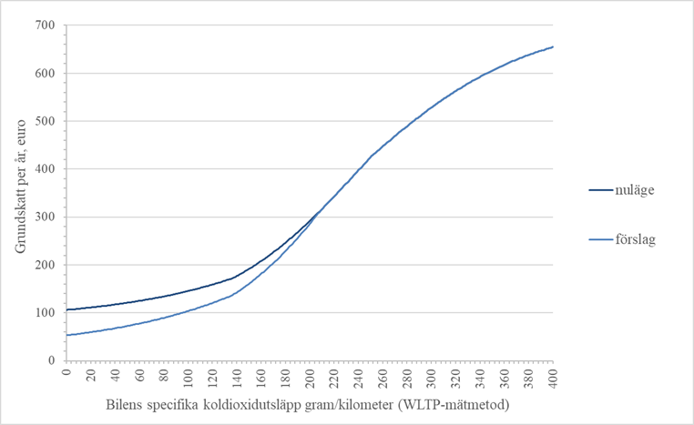 Genom en ändring som gjordes sommaren 2018 anpassades fordonsskattens skattenivåer till den i EU-lagstiftningen avsedda nya globalt harmoniserade provcyckeln för lätta fordon, dvs. Worldwide Light Vehicles Test Procedure, nedan WLTP. Denna nya mätmetod ersätter från och med ingången av september 2018 den europeiska körcykel som gällde tidigare, dvs. New European Driving Cycle, nedan NEDC. Genom lagen om ändring av 10 § i och bilagan till fordonsskattelagen (571/2018) togs i bilagan till lagen in en ny skattetabell, som från och med den 1 januari 2020 och därefter tillämpas på beskattningen av fordon vars utsläpp uppmätts enligt den nya metoden. Efter ändringen finns det i bilagan till fordonsskattelagen två på fordonets koldioxidutsläpp baserade skattetabeller som gäller fordonsskattens grundskatt, och som tillämpas på fordon som används i trafik på basis av huruvida bilarnas koldioxidutsläpp har uppmätts enligt WLTP eller enligt en annan mätmetod som avses i EU-lagstiftningen. Skattetabell 2 i bilagan till fordonsskattelagen tillämpas på fordon som beskattas på basis av totalmassan.
