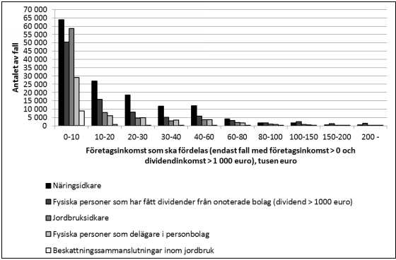 Även om merparten av småföretagen har små inkomstbildningar finns det bland dem, ställd i relation till det totala antalet småföretag, en fåtalig grupp företag som har stora inkomster räknat i euro, men små eller medelstora inkomster i relation till företagets nettoförmögenhet. Av de här företagens resultat beskattas en större del än genomsnittet som kapitalinkomst, och därför har de senaste årens skärpningar i kapitalinkomstbeskattningen kunnat drabba dem.
