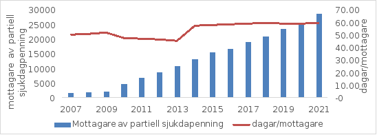 Enligt 2 mom. har en arbetstagare eller företagare som är arbetsoförmögen i enlighet med 8 kap. 4 § rätt till partiell sjukdagpenning efter den självrisktid som avses i 7 § eller efter den sjukdagpenning eller rehabiliteringspenning som omedelbart föregått den partiella sjukdagpenningen. Med självrisktid avses den dag då arbetsoförmågan började och de nio närmast därpå följande vardagarna. I tillämpningspraxisen har det ansetts att om en person arbetar under självrisktiden, avbryter arbetet självrisktiden. Detta innebär att personen för att få partiell sjukdagpenning ska vara helt borta från arbetet under självrisktiden och att det först därefter är möjligt att inleda deltidsarbete.