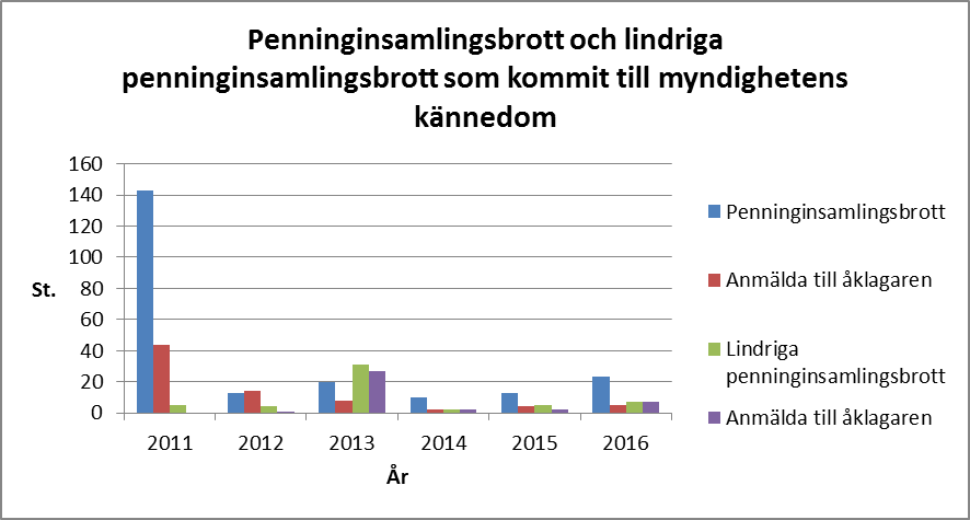 Tillstånd till penninginsamling behöver inte heller för penninginsamlingar som en förening som uteslutande arbetar för att stödja en kandidat i allmänna val eller en sådan partiförening som avses i 8 § 1 mom. i partilagen (10/1969) anordnar under en kampanjperiod för att täcka kostnaderna för en valkampanj. Det ska dock lämnas en redovisning för sådana valinsamlingar som avses i lagen om penninginsamlingar. Antalet redovisningar som lämnats till Polisstyrelsen har varierat under olika tider. Under åren 2010–2015 lämnades sammanlagt 344 redovisningar till Polisstyrelsen. Åren 2010, 2013 och 2016 ordnades inga allmänna val. Åren 2011 och 2015 ordnades riksdagsval och 2012 och 2017 kommunalval och 2014 val till Europaparlamentet. Presidentval ordnades 2012. Enligt Polisstyrelsens meddelande i november 2017 hade det inom utsatt tid lämnats sex redovisningar för penninginsamling i samband med 2017 års kommunalval. Antalet kandidater i kommunalvalet 2017 var 33 618. Det finns ingen statistik över hur många kandidater som stöddes genom valinsamlingar.