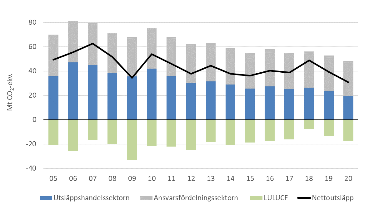 Den i lagen avsedda planeringen på medellång sikt av åtgärder för att begränsa klimatförändringarna ska gälla utsläppen av växthusgaser från ansvarsfördelningssektorn. Uppfyllelsen av de mål som avser en minskning av de samlade utsläppen av växthusgaser från utsläppshandelssektorn och ansvarsfördelningssektorn påverkas i hög grad av EU:s system för handel med utsläppsrätter och dess funktion, som Finland för egen del kan påverka genom stöd till åtgärder som ökar systemets verkningsfullhet som en del av unionens klimatpolitik.