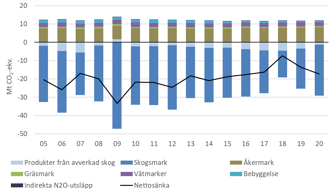 Även om upptaget enligt lagens syfte bör öka, kan sänkorna vara föremål för verksamhet som medför att den eftersträvade utvecklingen av upptaget varierar under enskilda år eller regionalt. I synnerhet avverkningsuttaget i ekonomiskogarna påverkar nivån på kolsänkan i skogarna. Således finns det stor mellanårsvariation i sänkan, och dessutom har vissa åtgärder inom markanvändningssektorn som avser sänkor långsammare effekter än åtgärderna inom andra sektorer. Genom en hållbar skötsel av skogarna främjar man uppnåendet av klimatmålen för markanvändningssektorn och ökningen av sänkorna samtidigt som de övriga delområdena för hållbarhet beaktas. Definitionen av hållbar skogsvård utvecklas med tiden, och begreppet klimatsäker skogsvård har under de senaste åren kommit att utgöra en del av granskningen av skogarnas övergripande hållbarhet.