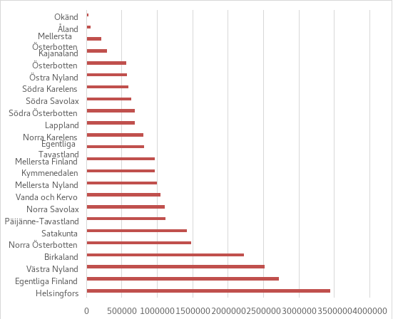 Ersättningar för privat sjukvård betalas i synnerhet i de stora städerna i södra och västra Finland. Efterfrågan är större i de stora städerna, eftersom utbudet av privata hälso- och sjukvårdstjänster är större i dem. År 2019 stod Nyland för 35 procent av verksamhetsställenas omsättning