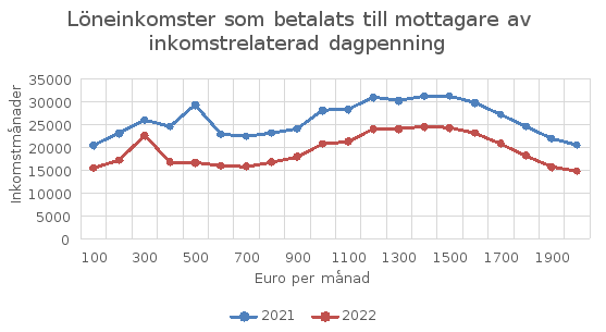 I synnerhet när det gäller mottagare av inkomstrelaterad dagpenning är det skäl att beakta att eftersom lönen som används vid periodiseringen ska vara den lön som betalats för det sista anställningsförhållandet, så kan den lön som används vid periodiseringen också i detta hänseende avvika från den lön som ligger till grund för dagpenning, om det senaste anställningsförhållande varit så kortvarigt att arbetsvillkoret inte uppfylls på nytt. Om anställningsförhållandet varar längre än den tid som används vid fastställande av den lön som ligger till grund för dagpenning, beräknas den lön som används vid periodiseringen utifrån samma tid som den för vilken den lön som ligger till grund för dagpenning bestäms. I den lön som beaktas vid periodiseringen ska samma lönedelar beaktas som vid periodisering av ekonomiska förmåner.