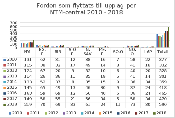 Tabell 1: Fordon som flyttats till upplag per NTM-central 2010 – 2018