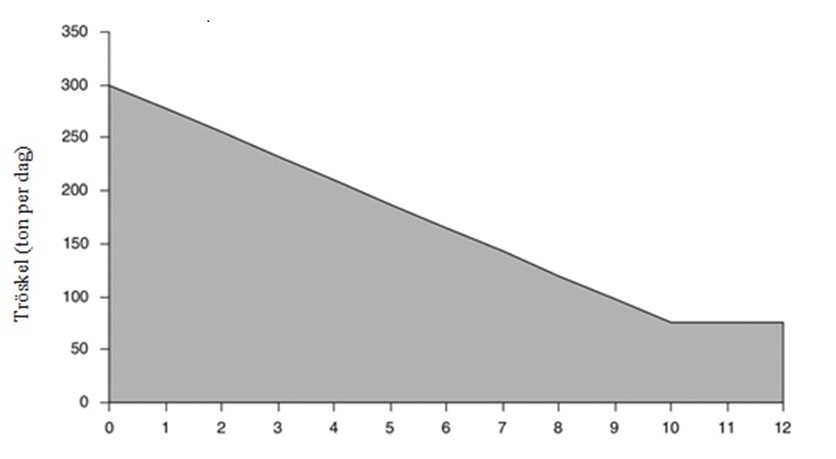 e) Behandling och bearbetning av endast mjölk baserad på en invägning av mer än 200 ton per dygn (årsmedelvärde) | | e) Andra än i 4 l-punkten i bilaga 4 avsedda anmälningspliktiga anläggningar för uppsamling, behandling eller bearbetning av endast mjölk baserad på en invägning av minst 100 och högst 200 ton per dygn |